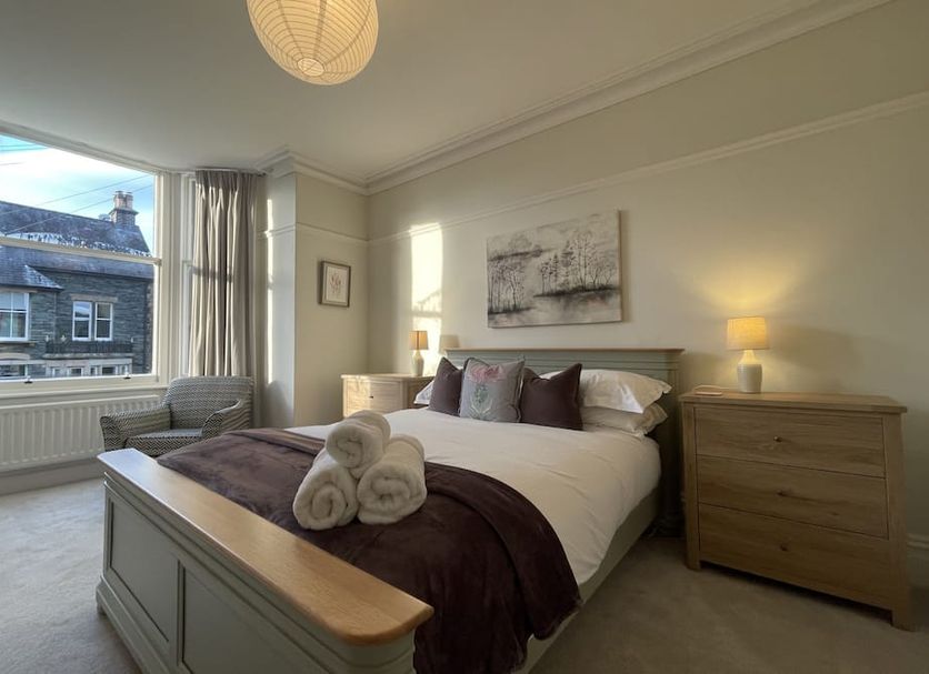 Upon entering the property, you are welcomed with an entrance hall that has turn-of-the-century blue and red hall floor tiles. There is a dedicated space under the stairs with door hooks to hang your coats and store your muddy boots. The property benefits from two reception rooms which are perfect if the adults want to watch something different from the kids. The spacious main living room has three plush sofas that look onto the large wall-mounted Smart TV. The second reception room boasts a cosy electric fire to compliment the central heating throughout, a left-hand chaise sofa to snuggle up on, and another large Smart TV. There is also a cabinet full of card games, board games, jigsaws, and books to entertain you. The modern kitchen is well equipped with essentials that include a large fridge-freezer, cutlery, utensils, cookware, and appliances such as a built-in microwave and oven with an induction hob and dish washer, there is also a stylish butler’s sink. There is access to the garden via a side door. Enjoy your home-cooked meals in the charming dining room that features a rustic wooden table, and a wooden bench and chairs. A useful WC and wash basin houses the washing machine and dryer. Upwards to the first floor includes a spacious double bedroom with a standing wardrobe and two bedside tables. The main family bathroom features a waterfall shower head over the bath, that will be perfect to soak your muscles after a day out exploring. The second floor provides a tastefully decorated twin bedroom with a large wooden standing wardrobe, there is also an ensuite with a WC, wash basin and shower. There is also an attractive King-sized bedroom that has a cabinet for your clothes and a full-length mirror. It also has an ensuite a WC, wash basin and shower. You can see spectacular views of Whinlatter forest and Grisedale Pike. Moving onto the third floor, this has the final two bedrooms. It has another appealing twin bedroom, that also has an ensuite with a WC, wash basin and shower. The views from the back of the third floor looking over towards the Borrowdale valley are breathtaking. The final spacious master bedroom has a King-sized bed, two bedside tables, a desk to journal what you’ve done throughout the day and the most perfectly positioned chair in the balcony window so you can look out towards Whinlatter and lose yourself in the beauty of the fells. The private enclosed outdoor area welcomes you with the patio that has been paved with a stylish finish and this is where there is outdoor seating so you can enjoy a meal or a glass of wine at the end of the day. There is a grass area to enjoy picnics on that leads to a raised patio with two deck chairs that will capture the last of the sun’s rays. There is also private bike storage in the outdoor area so you can explore the fells on your bike. This property has a dedicated parking area behind the house that could provide space for three or four cars. This is a rare feature so close to the town centre. You'll be spoilt for choice in Keswick town with a fantastic selection of independent shops, cafes and welcoming traditional pubs. The property is equally as convenient for exploring the great outdoors, why not lace up your boots and head up the nearby Fells, cycle Whinlatter, check out beautiful Derwentwater, or head to the nearby marinas for watersports.